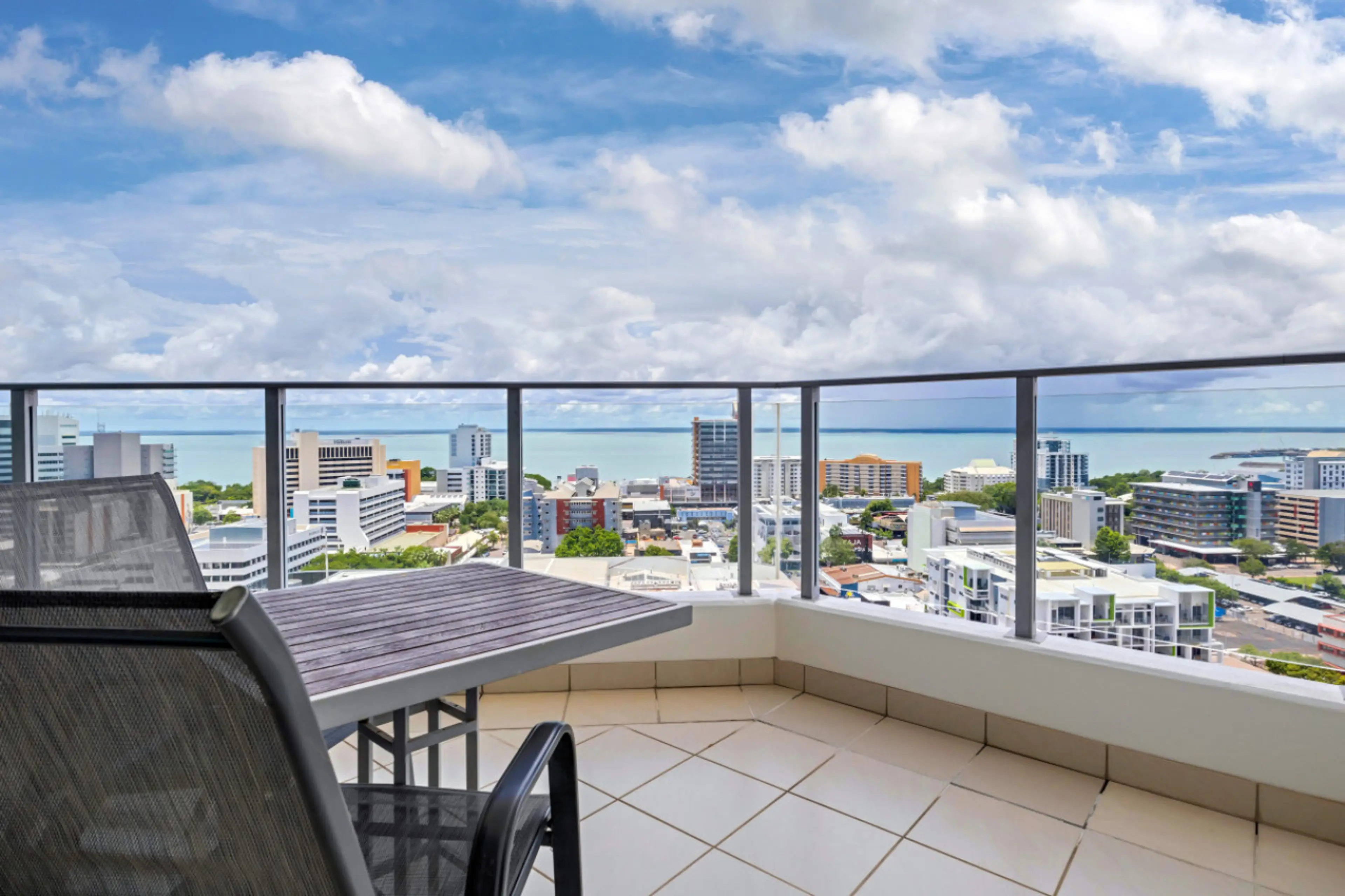 Experience stunning ocean and city views from this modern one-bedroom, self-contained apartment on the 18th floor. Start your day on the private balcony, enjoying the sea breeze and panoramic views of the Arafura Sea and city skyline. Witness storms rolling in or marvel at the city lights at night, ...
