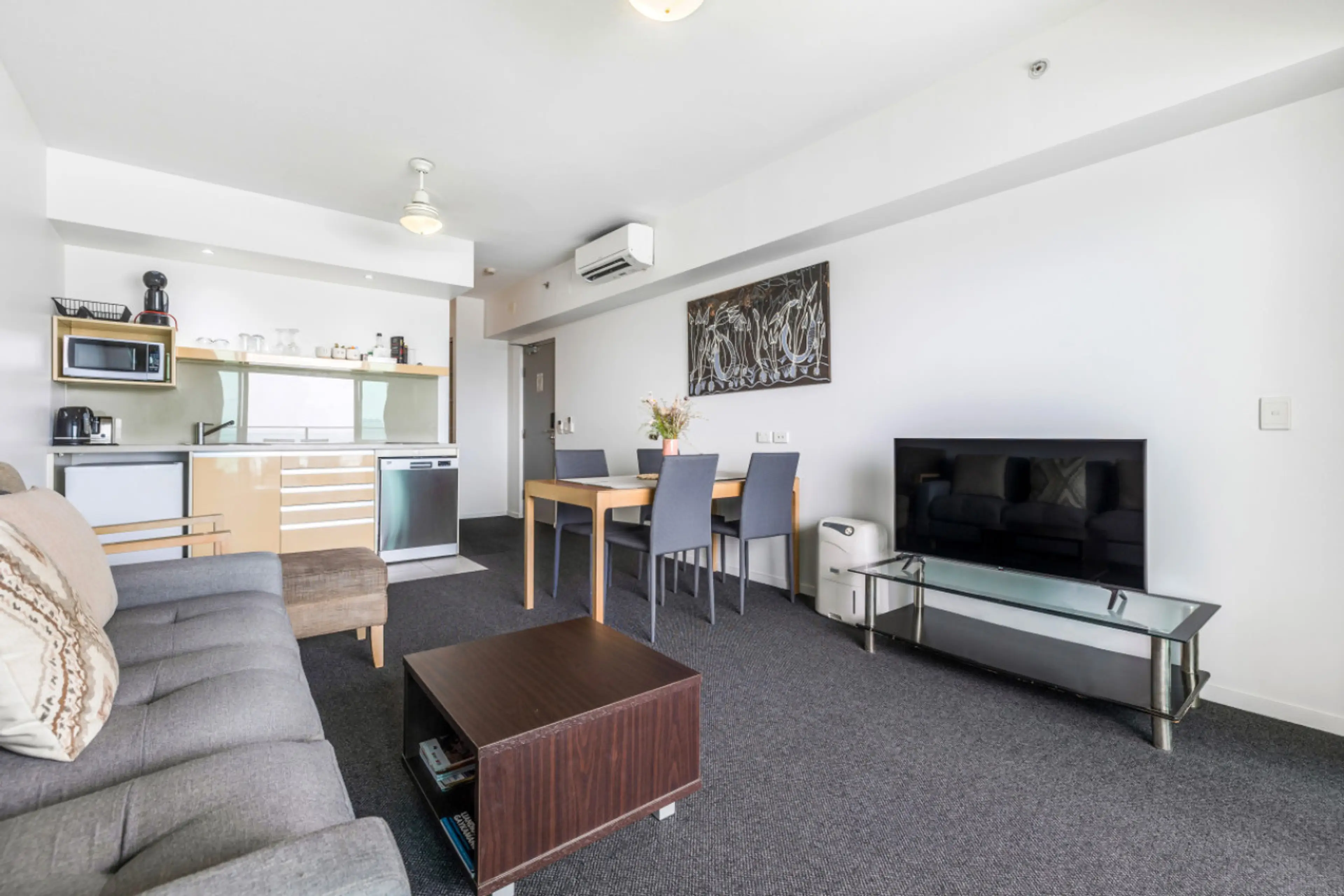 Welcome to your urban retreat in the heart of Darwin! Located on the 18th floor, this stylish one-bedroom apartment offers sweeping views of the city skyline and beyond. Step into a modern space designed for relaxation and ease, featuring a plush king-sized bed, high-speed internet, and a new air c...